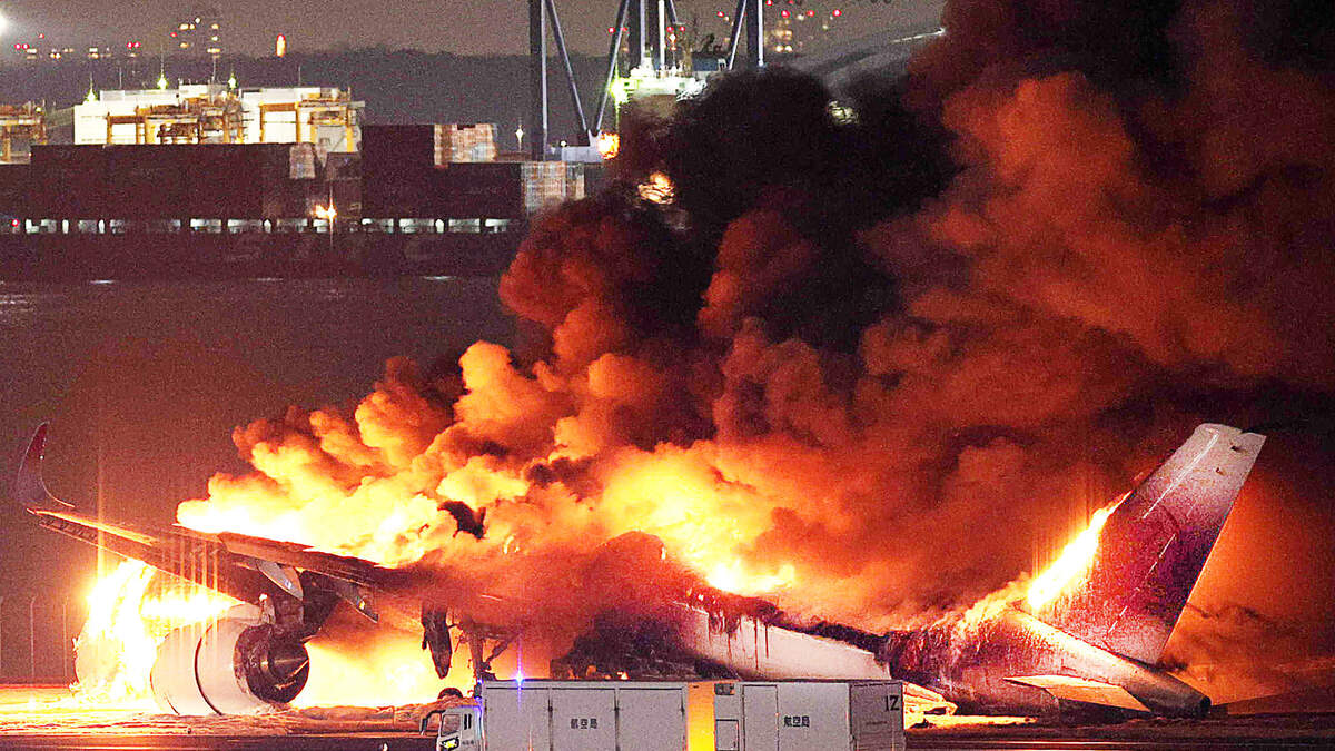 Flight 516 apparently collided with a Japanese Coast Guard aircraft as it was attempting to land, then streaked across the runway on fire.